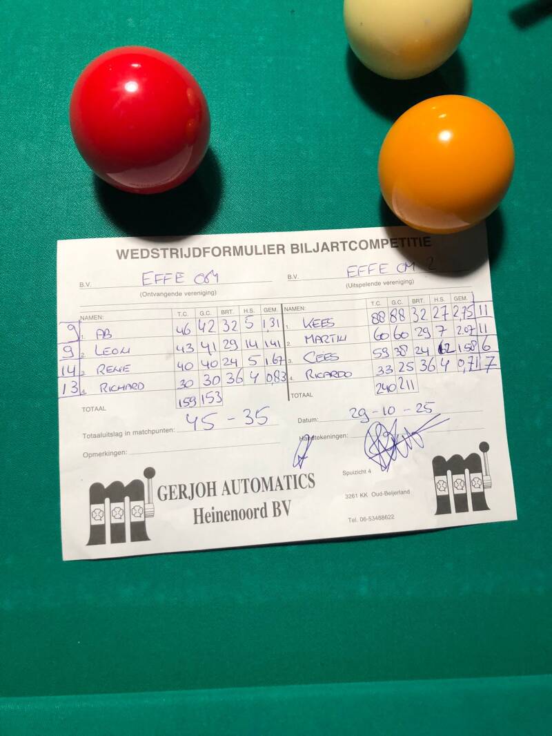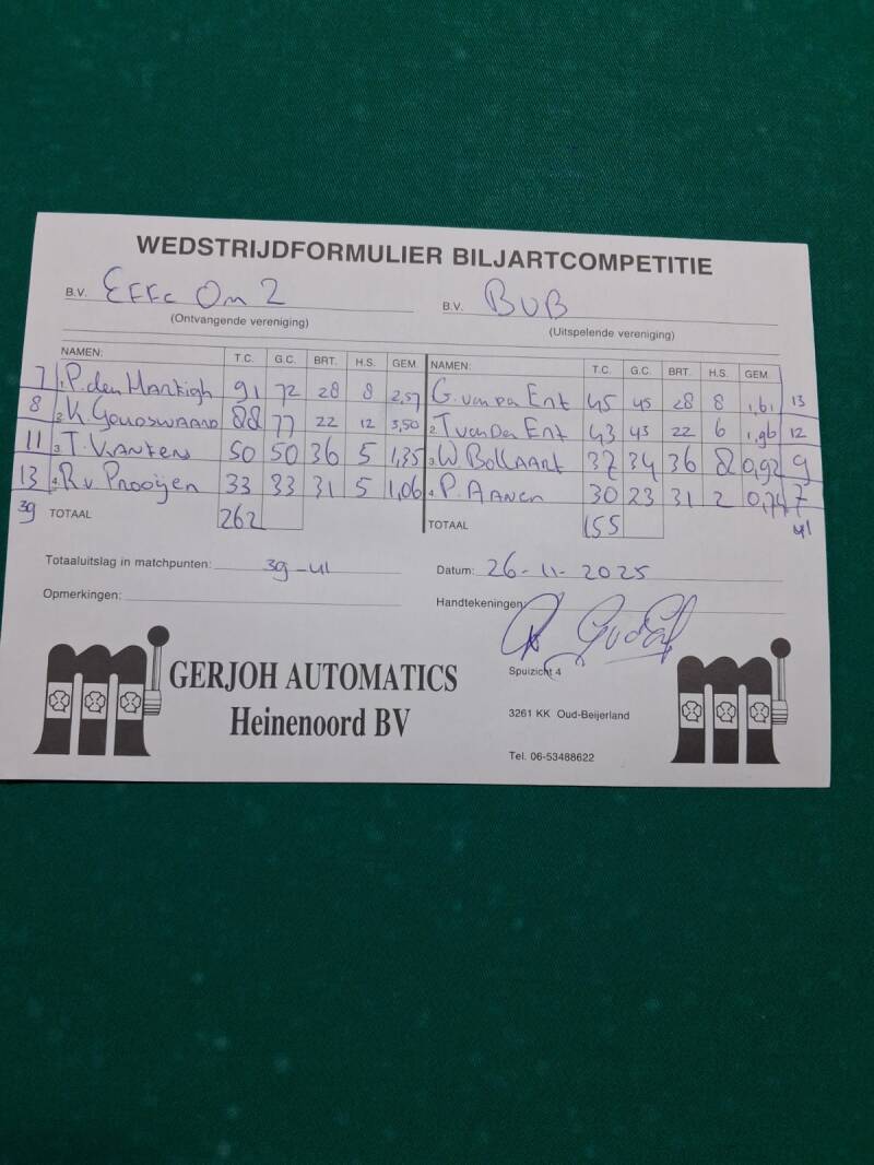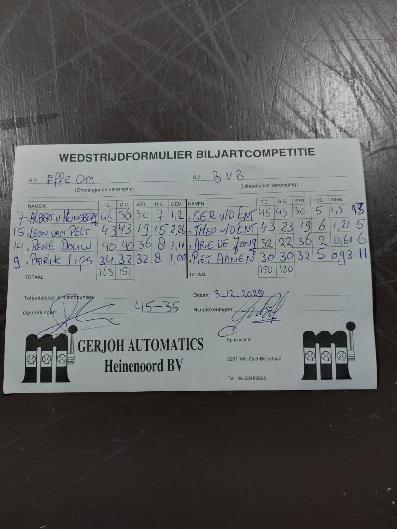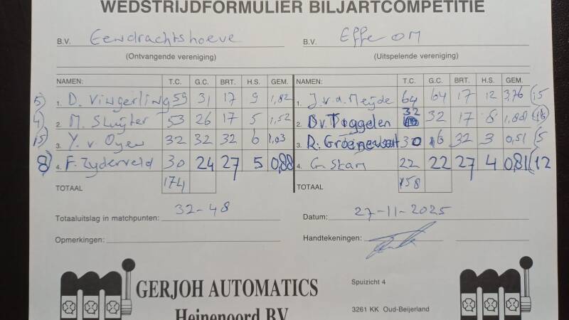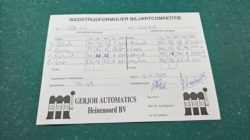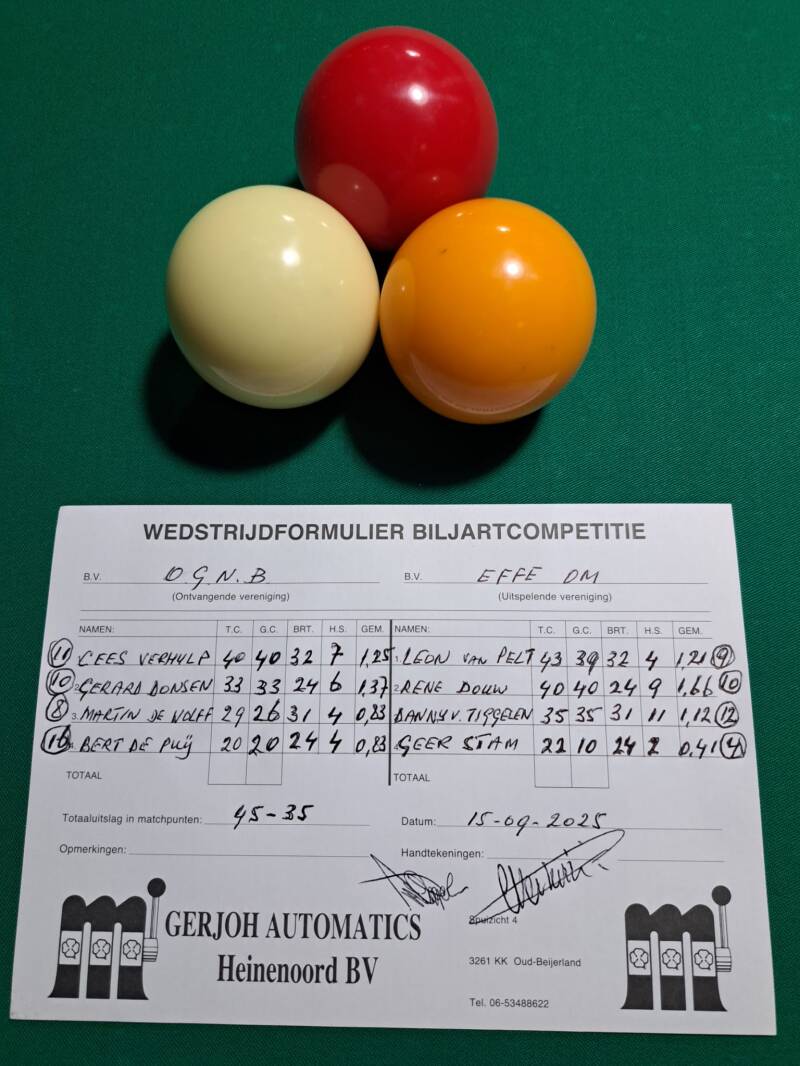 OGNB tegen Effe Om 45-35