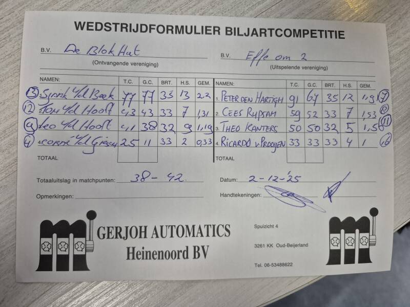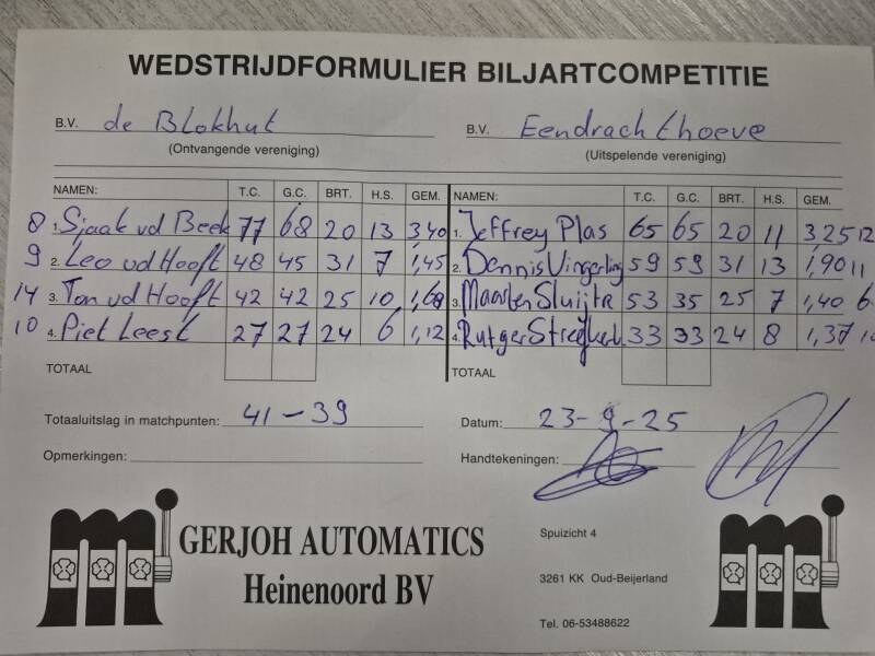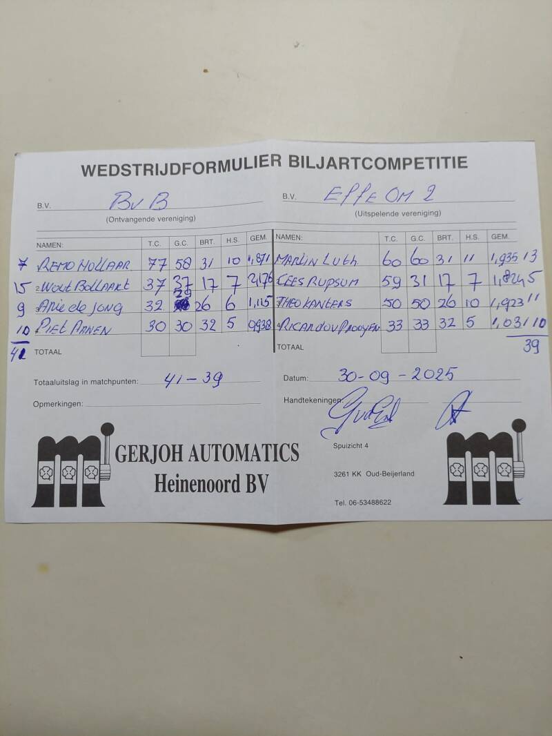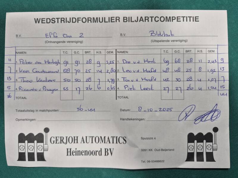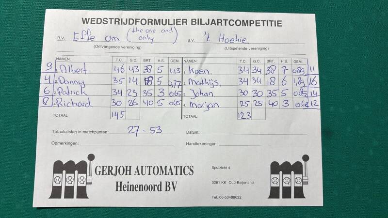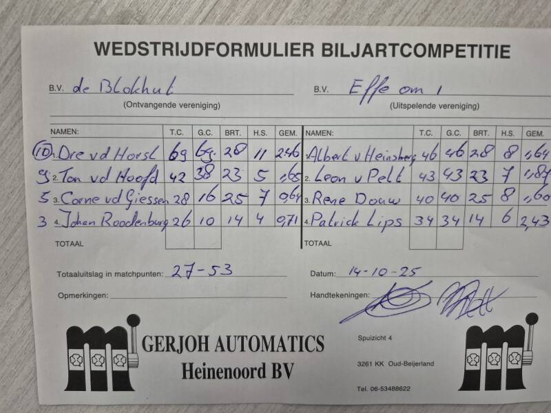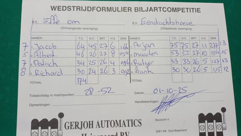 OGNB tegen Effe Om 45-35