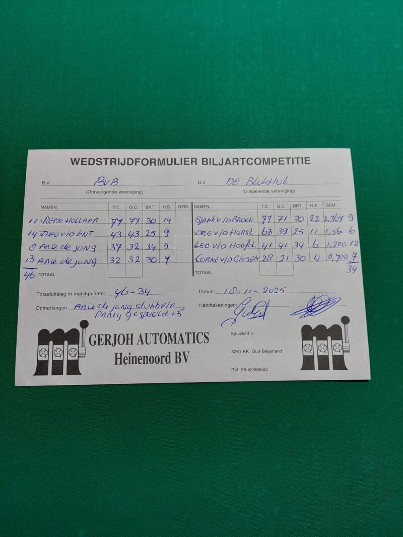 inhaal wedstrijd die eigenlijk 28 oktober gespeeld had geworden